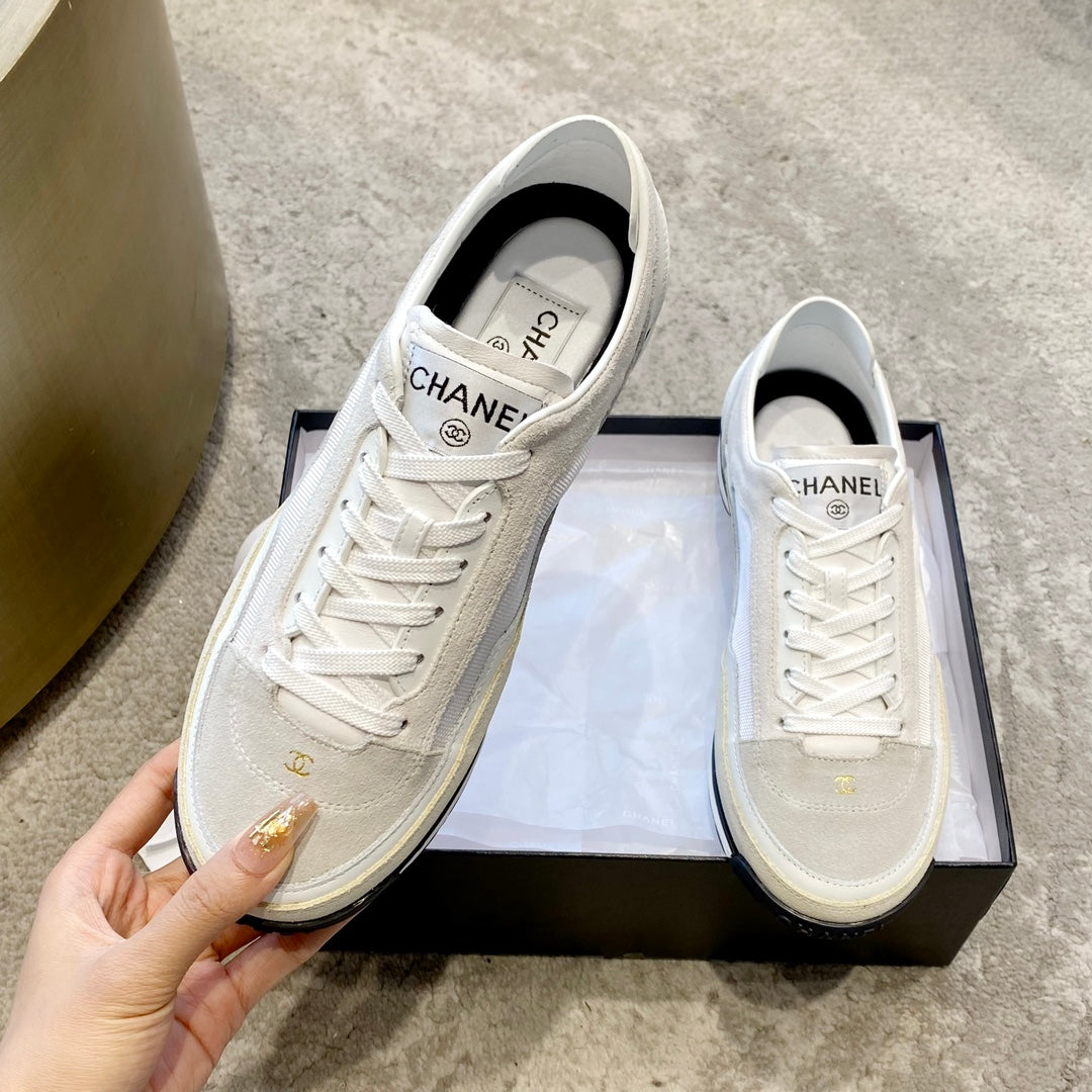 These lovely espadrilles are crafted of soft lambskin leather in beige with a Chanel CC patch and a black cap toe. These are ideal for a timeless accent to casual wear from Chanel!