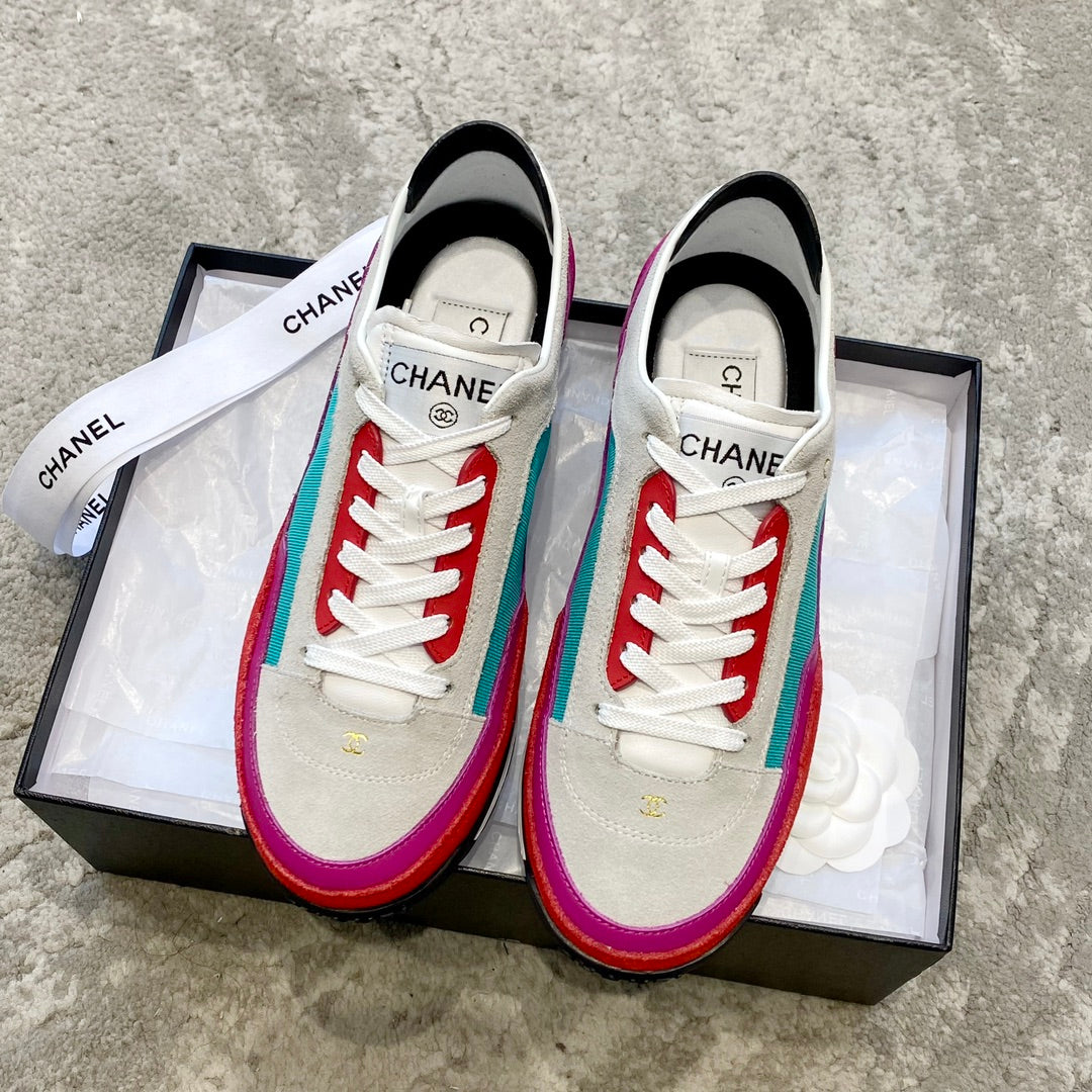 These lovely espadrilles are crafted of soft lambskin leather in beige with a Chanel CC patch and a black cap toe. These are ideal for a timeless accent to casual wear from Chanel!
