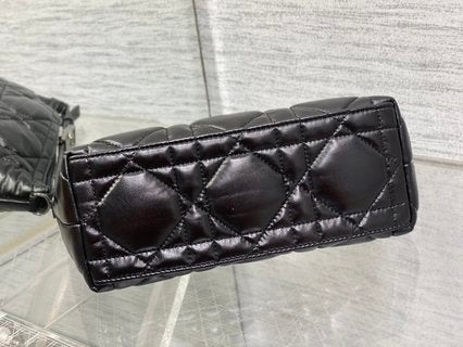 Maria Grazia Chiuri's DiorTravel Nomad pouch is a modern hybrid design. Crafted in calfskin, it stands out with a unique Macrocannage quilted effect, and a spacious and flexible form that will accommodate all the essentials. The medium style can be carried by hand or worn over the shoulder thanks to the top handle, complete with a military-inspired pale gold-finish metal CD buckle, while one of the House's embroidered shoulder straps can be attached to the side rings.