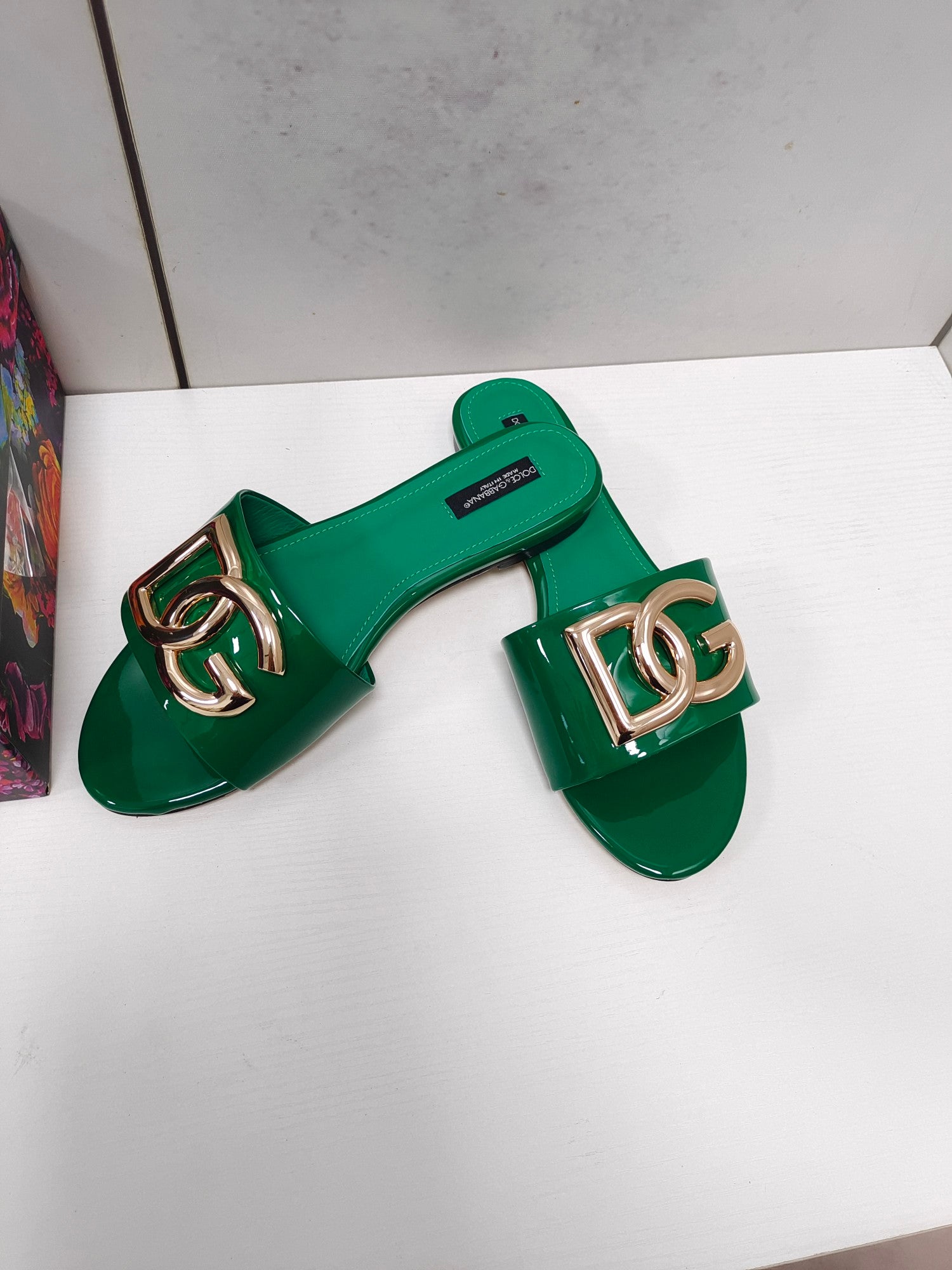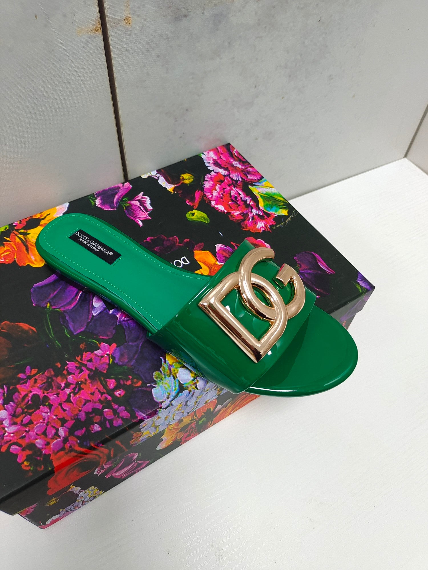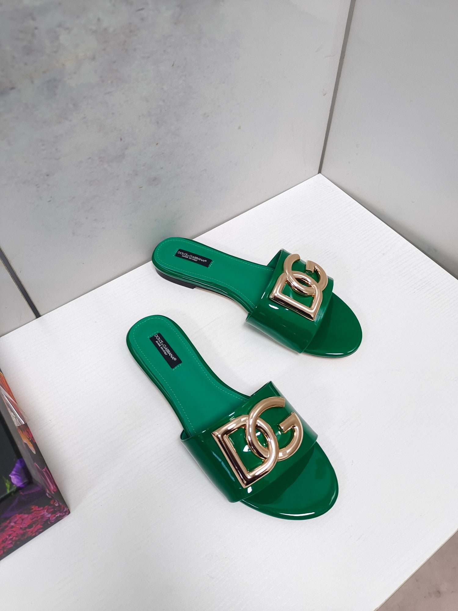 Dolce & Gabbana Polished Calfskin Sliders with DG logo