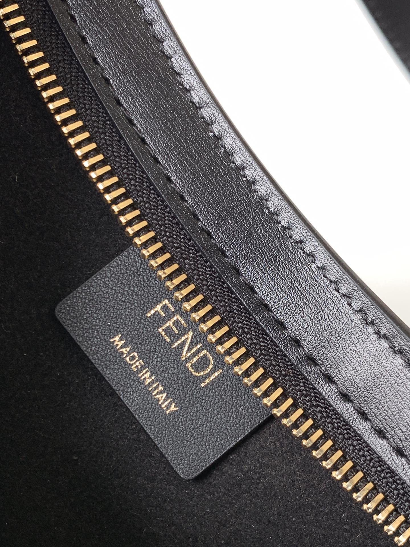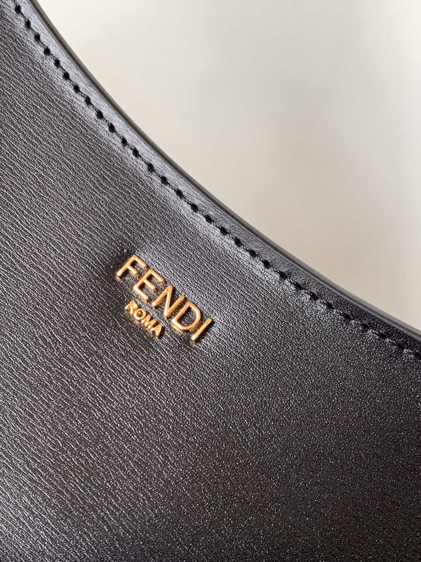 Pouch made of black leather with zip closure, decorated with Fendi Roma lettering in gold-coloured metal.