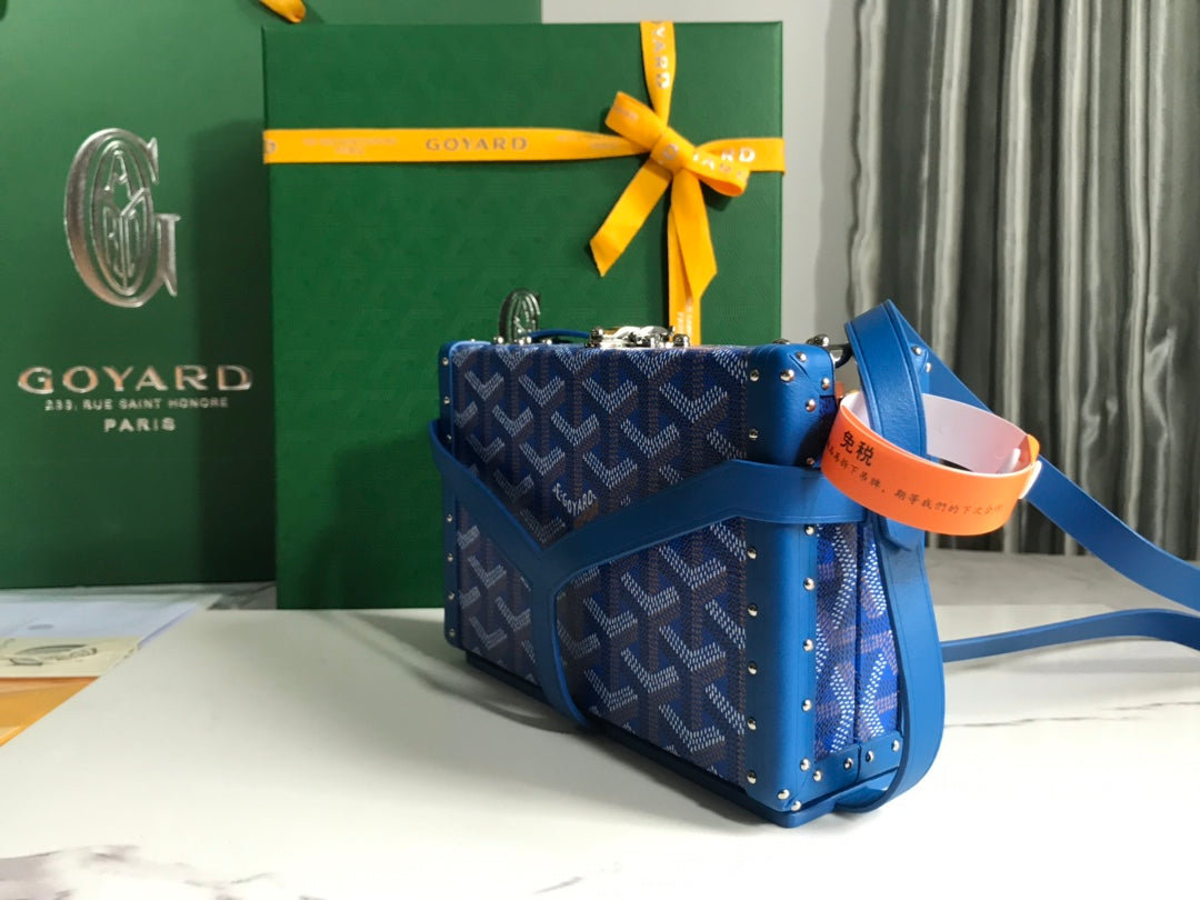 With its Goyard seal clasp, the 233 bag is one of Maison Goyard’s emblematic models. With a fixed, adjustable strap it can be worn over the shoulder or across the chest. Its size and two flat pockets make it perfect for carrying everyday personal items (purse, make-up, etc.).