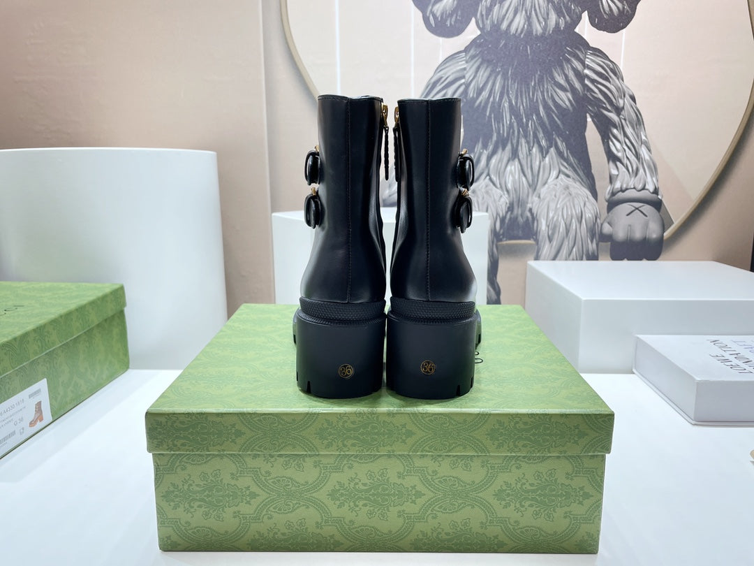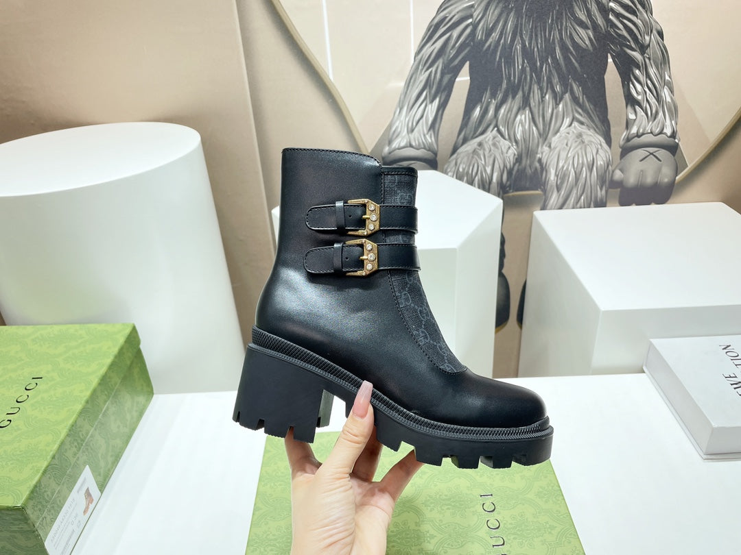 Sparkling crystals elevate this pair of ankle boots, elevating the classic hardware to become a signature design detail. The style is presented in a mix of black leather with monogram canvas.