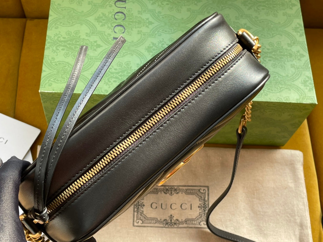 - Black matelassé chevron leather with GG on the back