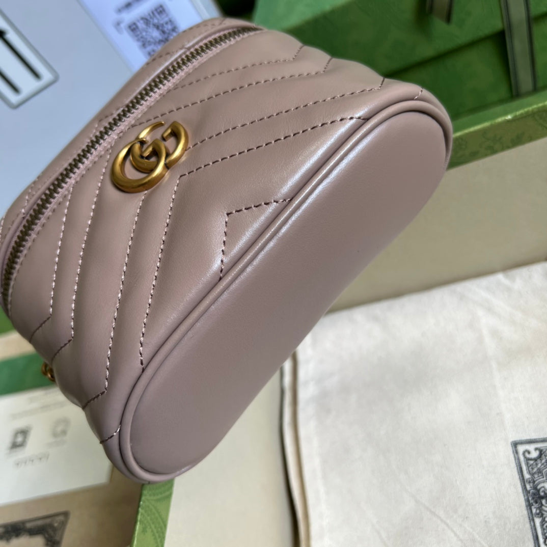 The Gucci Aria collection is an exploration of the House's most emblematic codes and symbols. A member of the Beloved family, the GG Marmont is synonymous with its matelassé leather and monogram hardware. The design appears here in the shape of a mini bag in black.