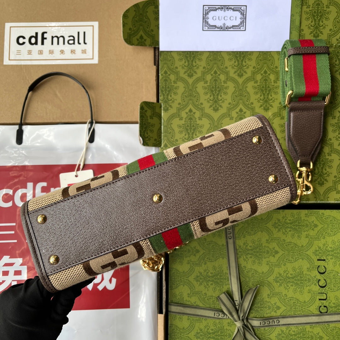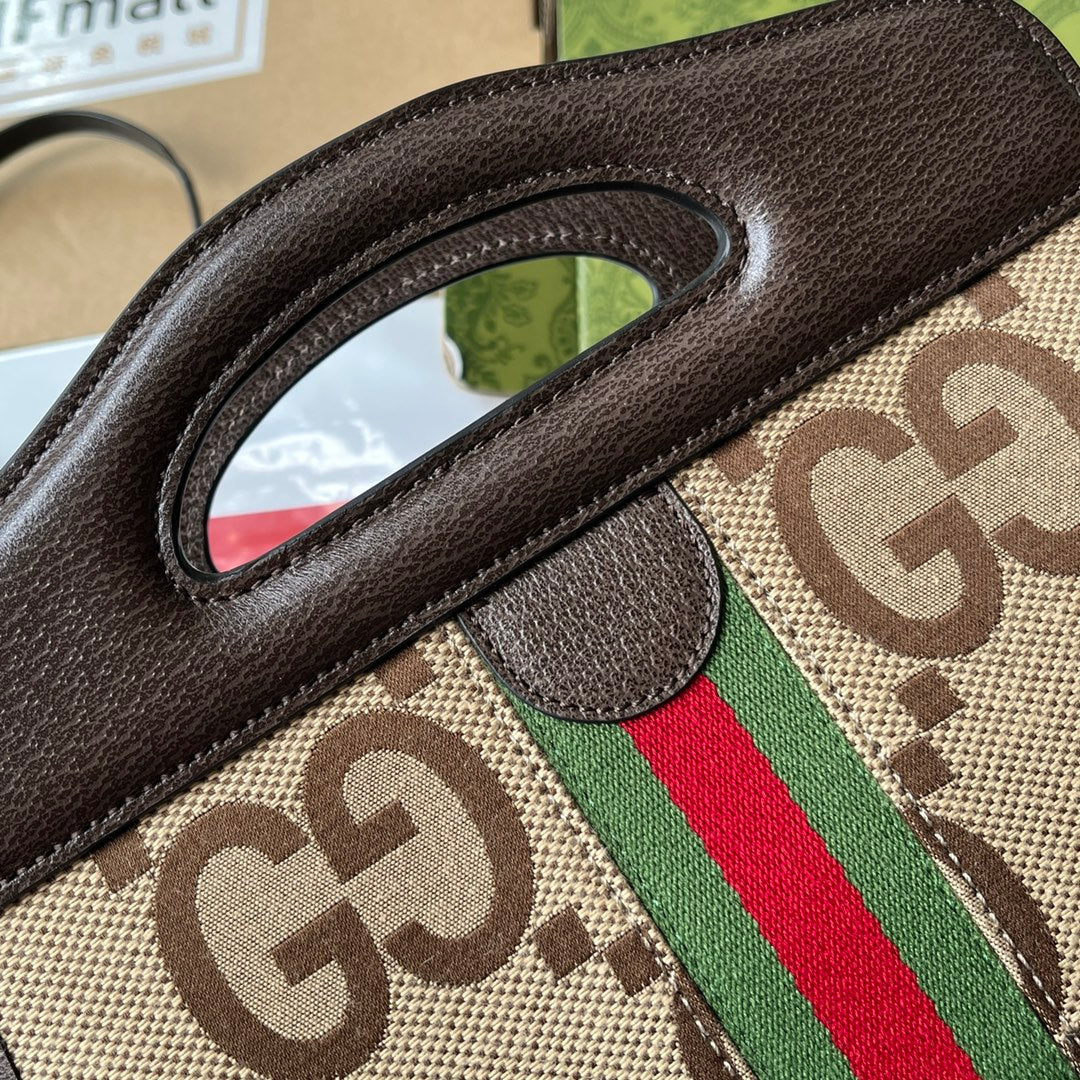 Colors tell a story throughout Gucci Love Parade. One of the House's most emblematic materials, the GG Supreme is inspired by an archival design from the '30s. Traditionally presented in beige and ebony, the canvas is presented in a beige and white combination as an ode to timeless pieces and everlasting design. Here, the pattern defines the Ophidia tote bag.