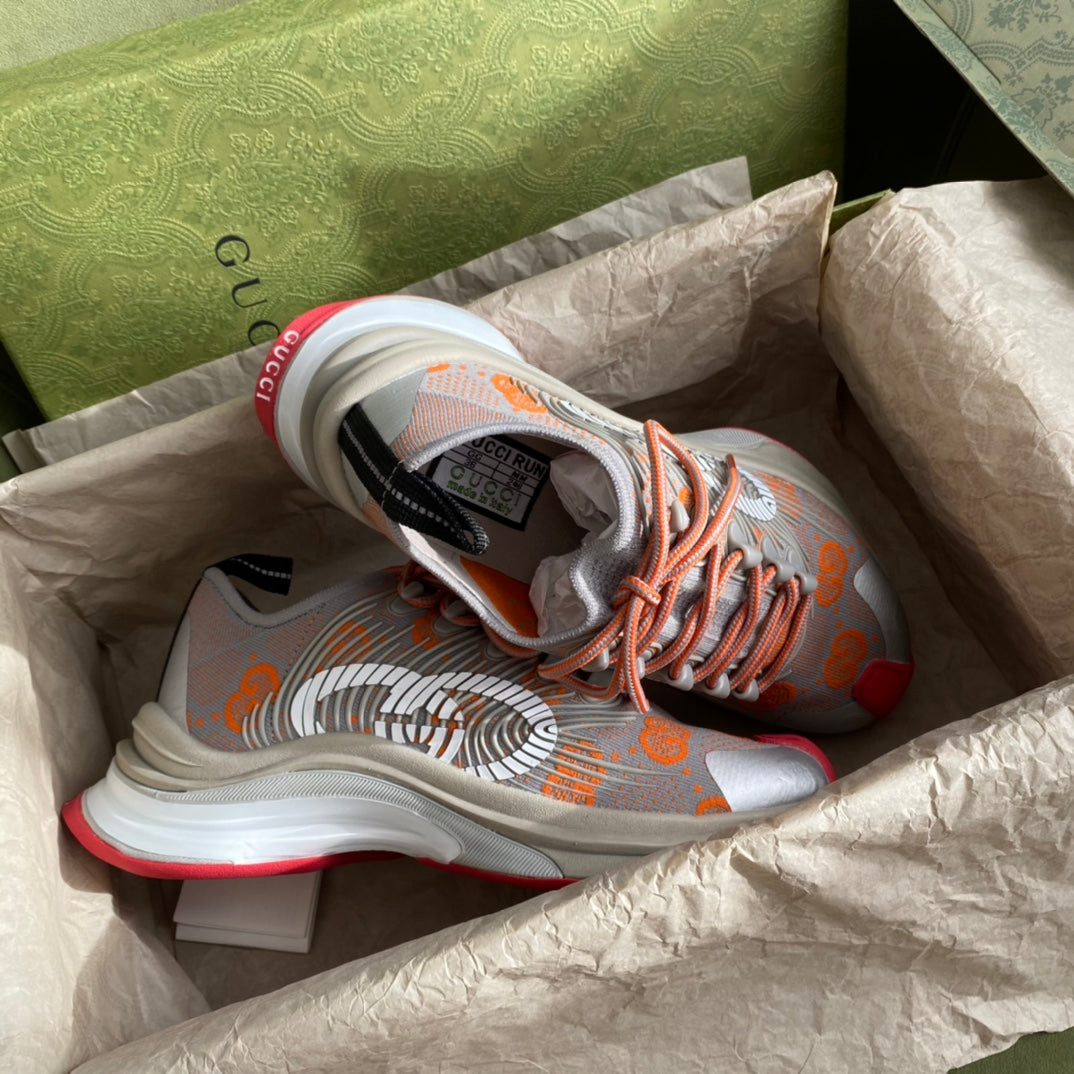 Designs inspired by the sporting world are interpreted through the Gucci lens with standout logo details. This pair of streamlined sneakers is crafted from black technical knit fabric and defined by the Interlocking G. A bi-color sole completes the style with a playful note of chromatic contrast.