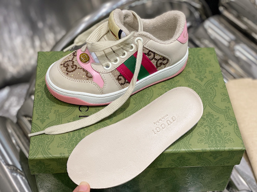 Influenced by classic trainers from the '70s, the Screener sneakers—named for the defensive sports move—feature the Web stripe on the side and the vintage Gucci logo. A new play on the House's monogram, this pair of sneakers features GG canvas with crystals. The House name is reinterpreted in new ways each season with a different play on its lettering.