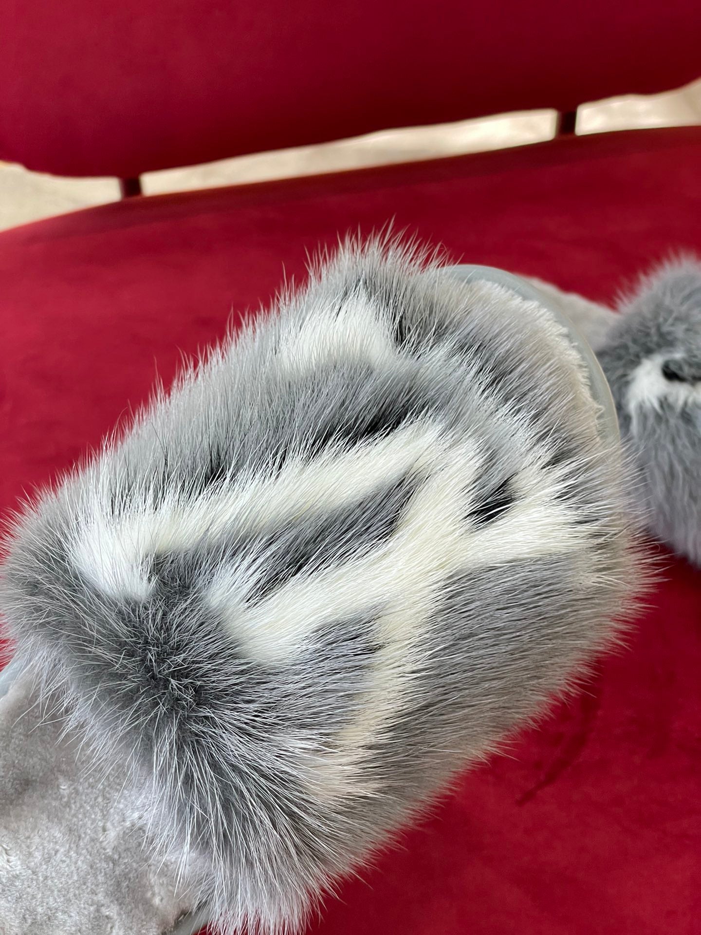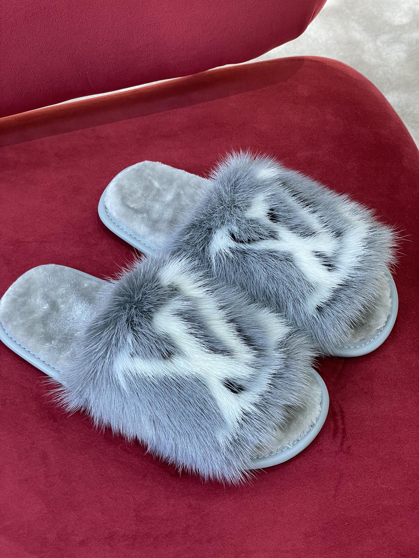 The Homey flat mule is crafted from luxurious mink fur printed with an oversized LV Initials signature. This open-toe, slip-on style is made even softer by its insock in sheared mink fur. Supple and lightweight, it is ideal for travel, and is accompanied by a matching velvet pouch