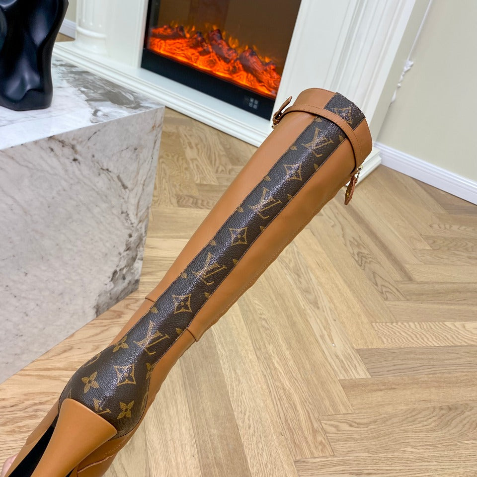 The Star Trail ankle boot, one of Louis Vuitton's most instantly recognizable designs, is interpreted in patent Monogram canvas for a truly iconic look. Black calf leather trim brings a chic twist to this army-inspired style with its leather laces and rugged platform sole.