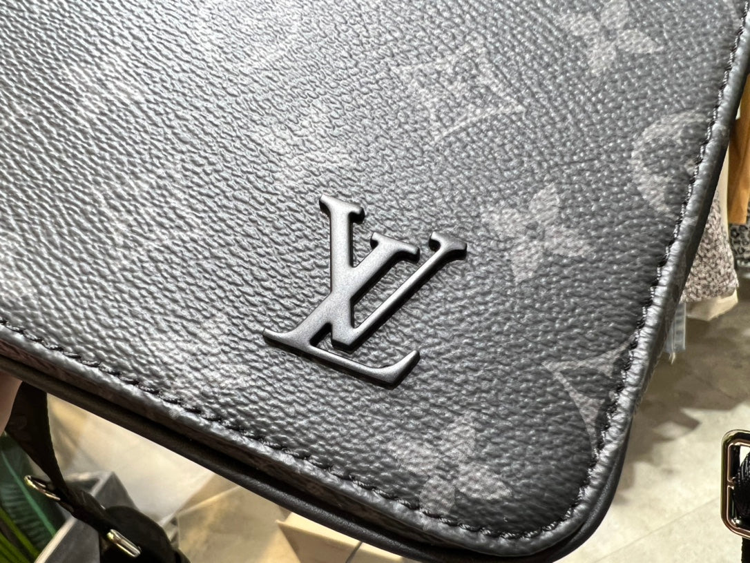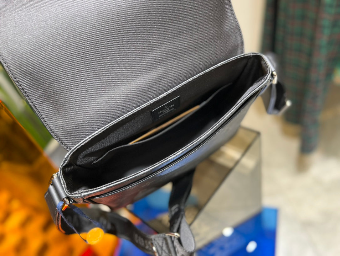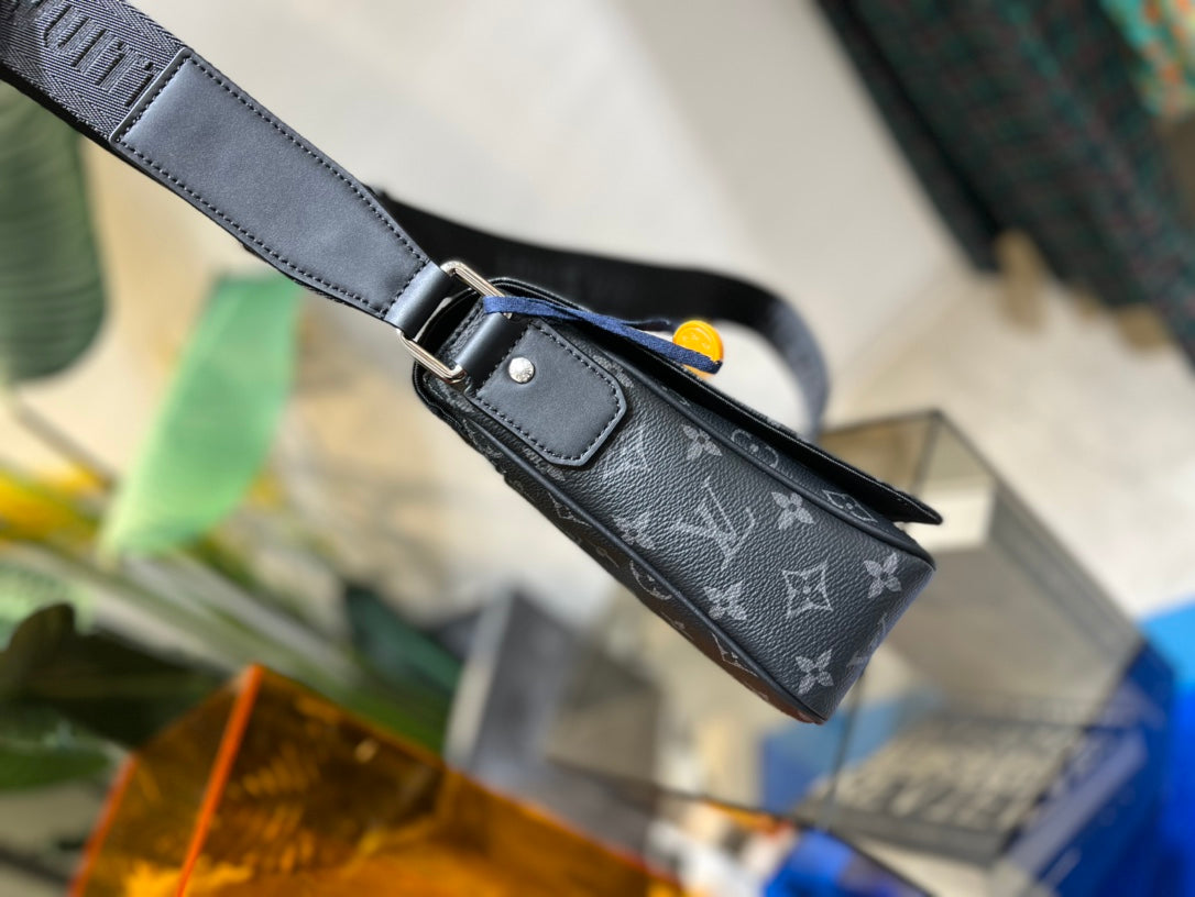 Made from masculine Monogram Eclipse canvas, the new District PM is a messenger-style bag with a contemporary design. An outside back zipped pocket gives quick access to essentials while the adjustable shoulder strap ensures comfortable carry. The strap is signed “Louis Vuitton” and the lower front corner features black metallic LV initials.