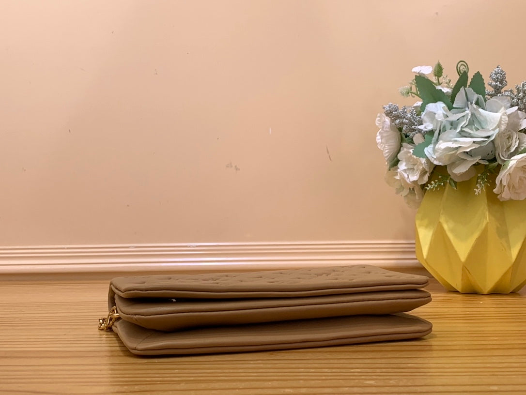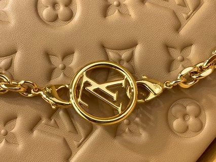The Pochette Coussin is crafted from soft lambskin, which is embossed with the Monogram pattern to create a puffy, cushiony effect. This is further enhanced by the construction of the pouch, which gives it a supple, body-friendly shape. The removable chain, decorated with a Louis Vuitton charm, offers different carry options: clutch, shoulder or belt.