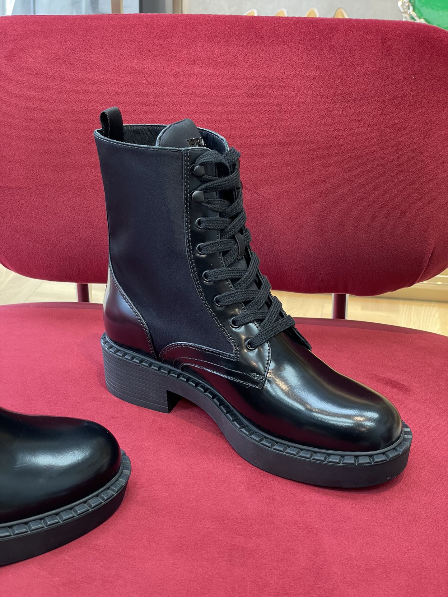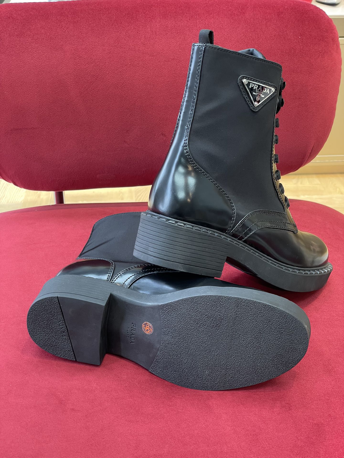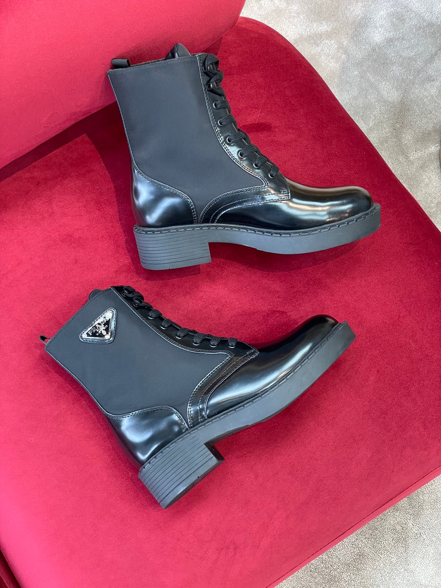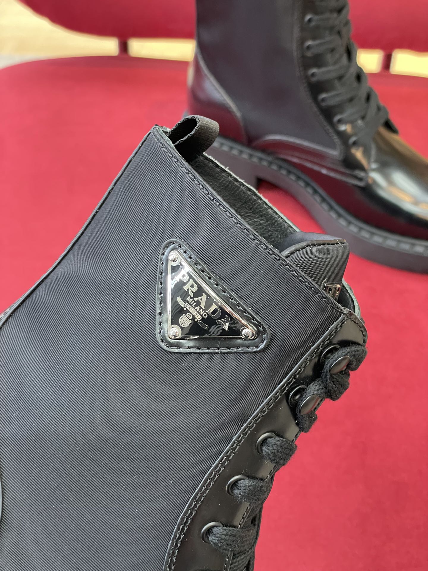 • Load image into Gallery viewer, Prada Brushed-Leather and Re-Nylon Boots