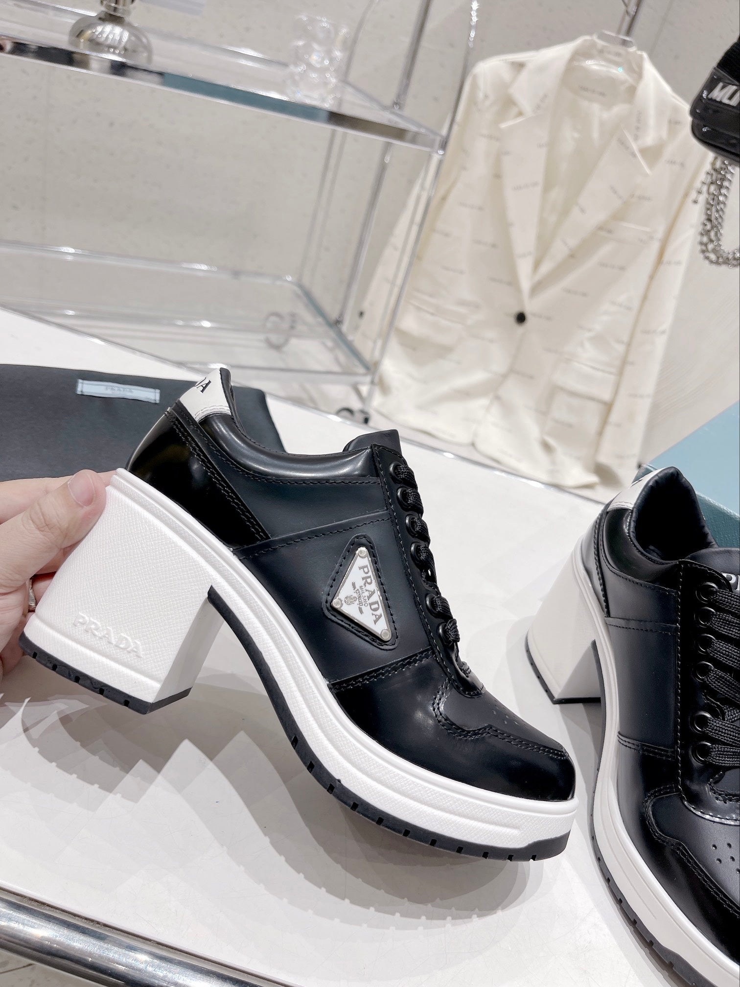 • Load image into Gallery viewer, Prada Downtown High Heel Leather Sneakers