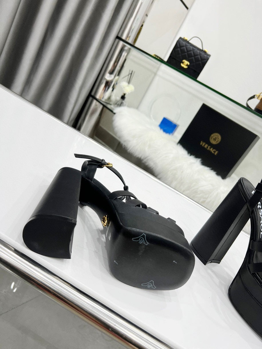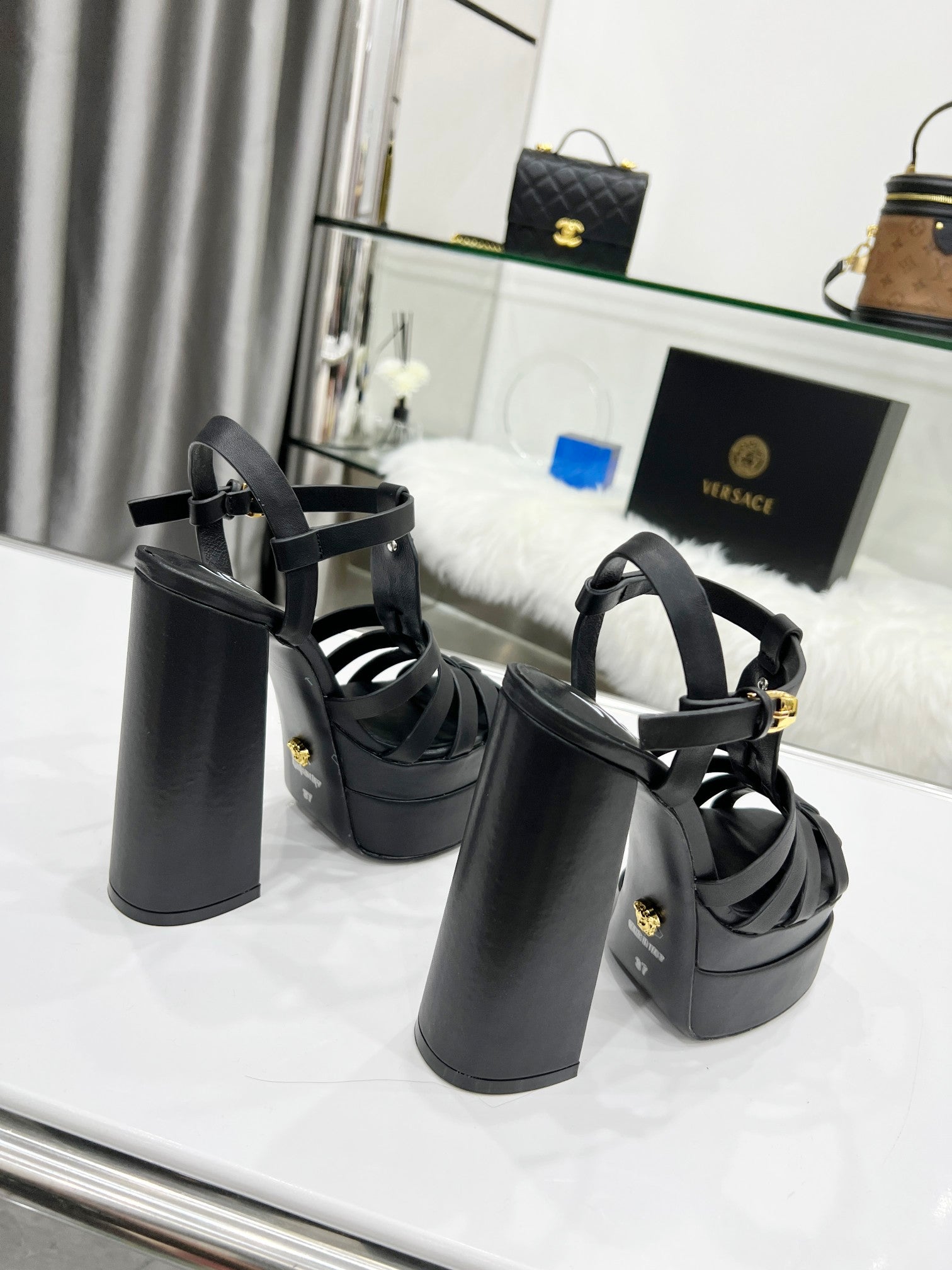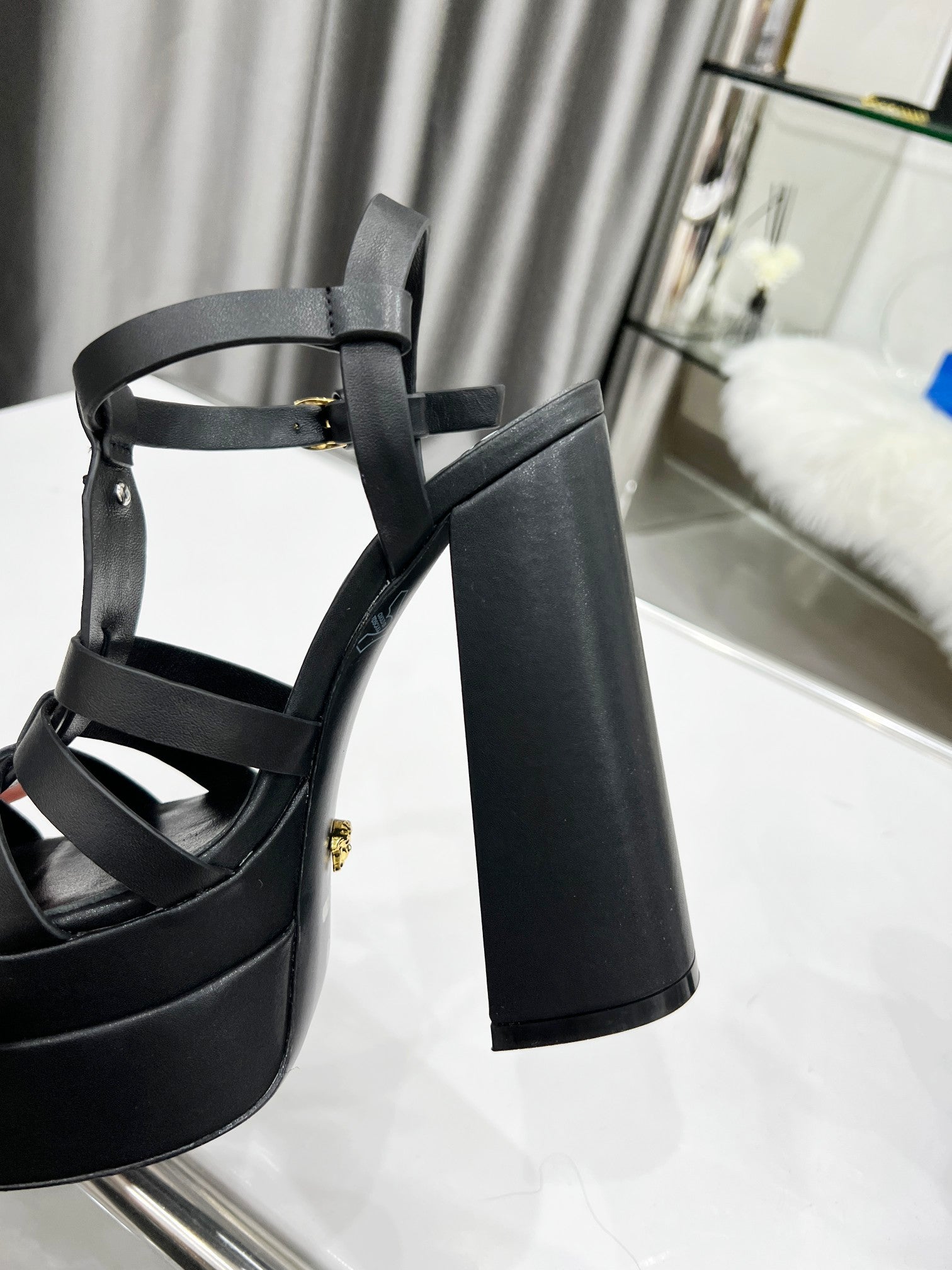 A chic and feminine design, these sandals are crafted in leather feature a block heel and a double platform. The Medusa motif adds brand DNA.