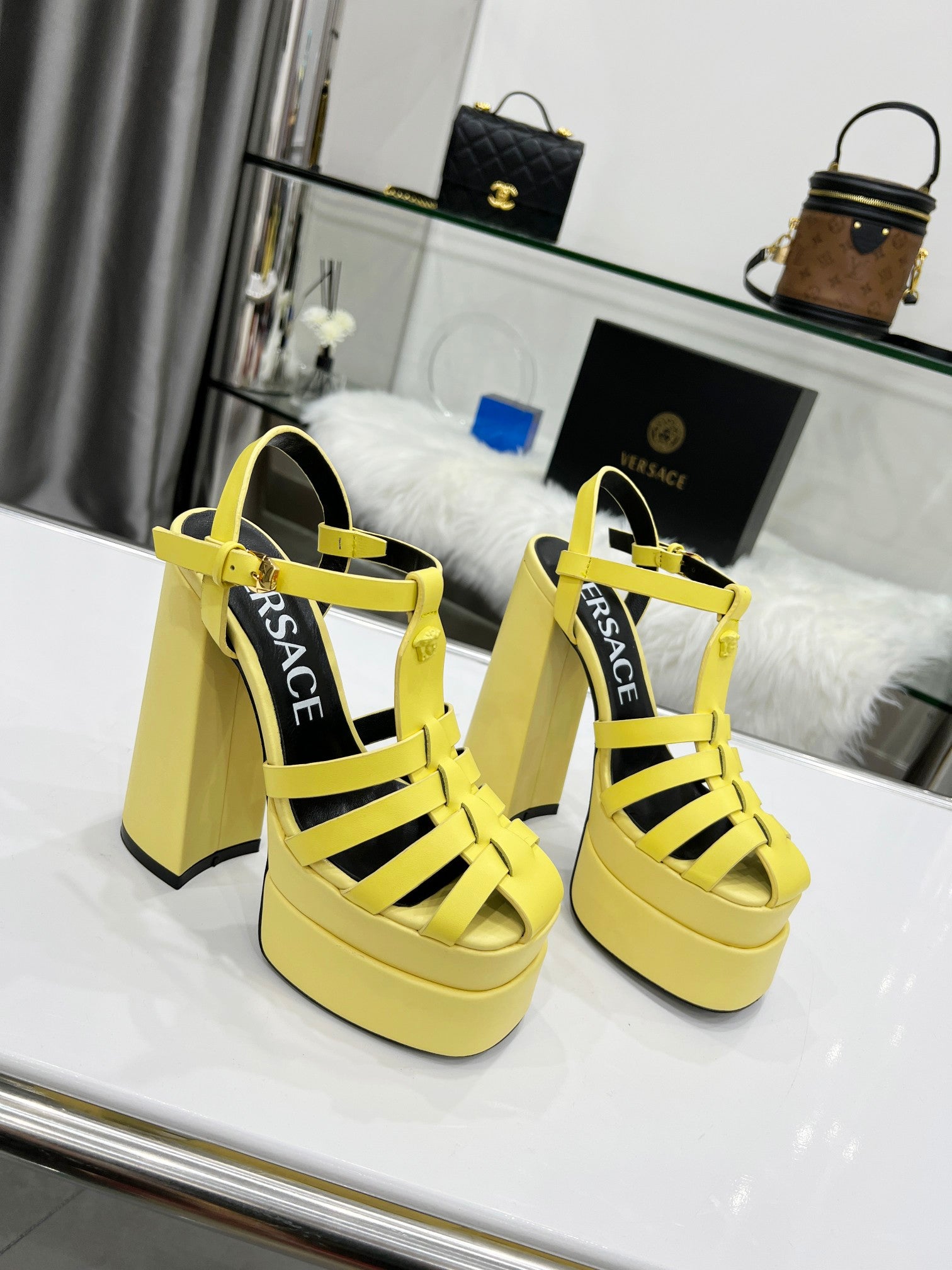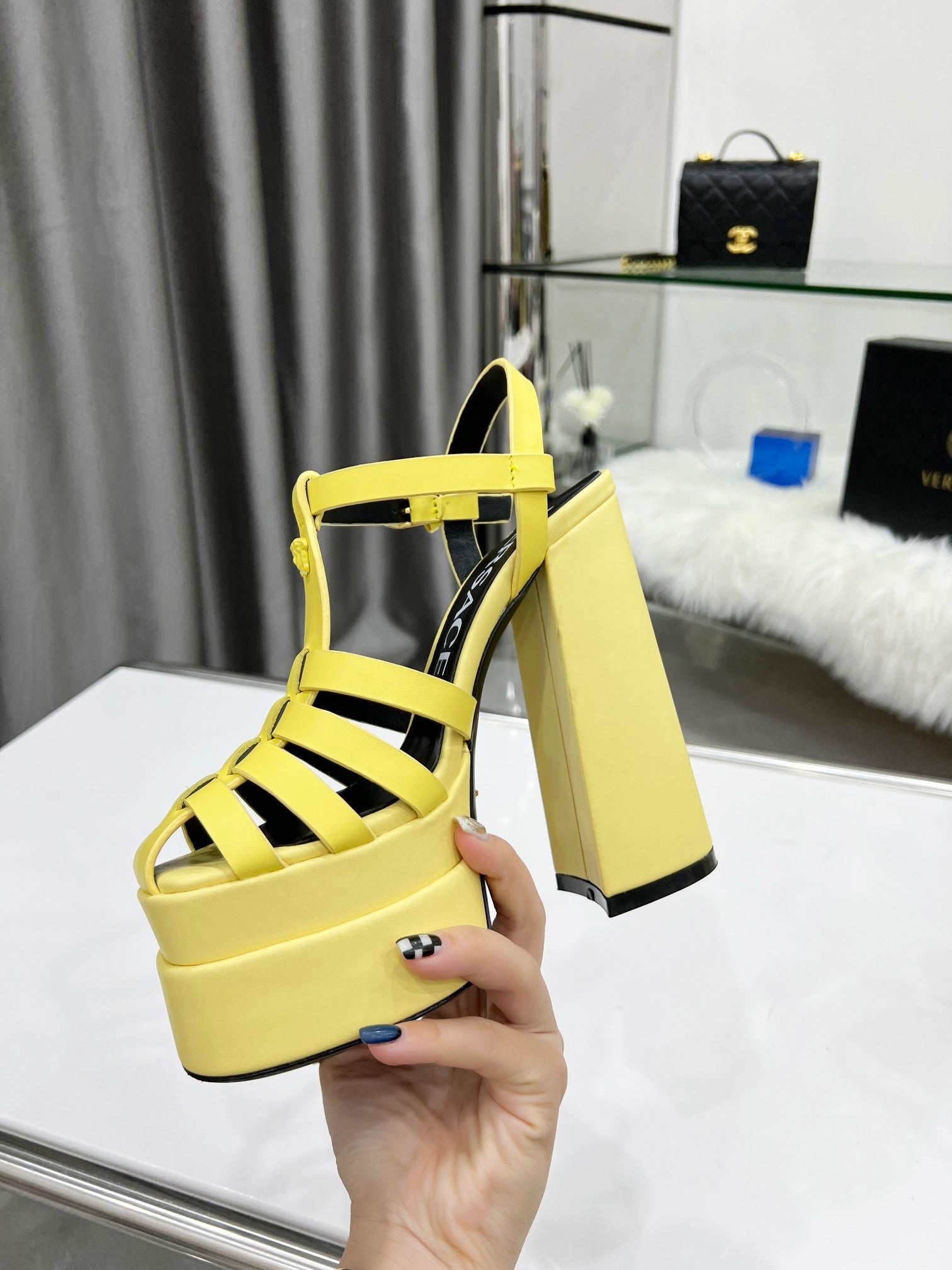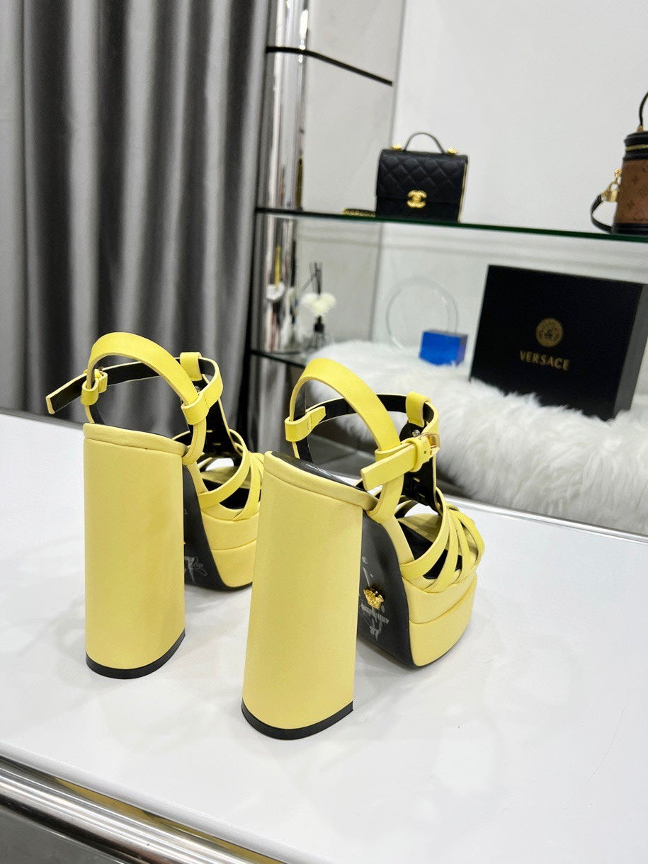 A chic and feminine design, these sandals are crafted in leather feature a block heel and a double platform. The Medusa motif adds brand DNA.